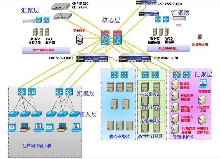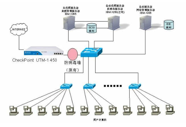 某企业网络数据中心部署CheckPoint案例拓扑图: